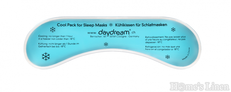 • Маската за сън е вече и маска за охлаждане на очите! Иновация при маските за сън. Само след 1 час във фризера, охлаждащия пакет ще ви помогне да охладите и успокоите очите си по един удобен и естествен начин. Чувствате се уморени и изтощени? Няма проблем - просто си вземете почивка, независимо къде се намирате. С маската за сън и охлаждащия пакет веднага ще почувствате как енергията ви се връща. Охлаждащия пакет е стандартна част от всяка маска за сън DayDream.