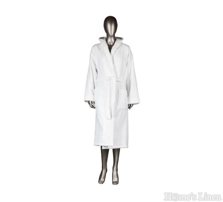 Дълъг халат за баня с качулка и джобове 100% микропамук Mika. Унисекс - подходящ за жени и мъже. Микропамукът попива в пъти по-добре от обиновения памук и съхне по-бързо.