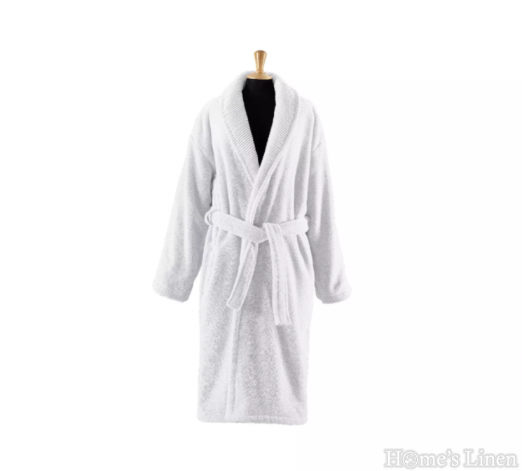 Изчистен и елегантен унисекс халат с яка тип "кимоно" с лого от 100% микропамук. Подходящ за мъже и за жени.