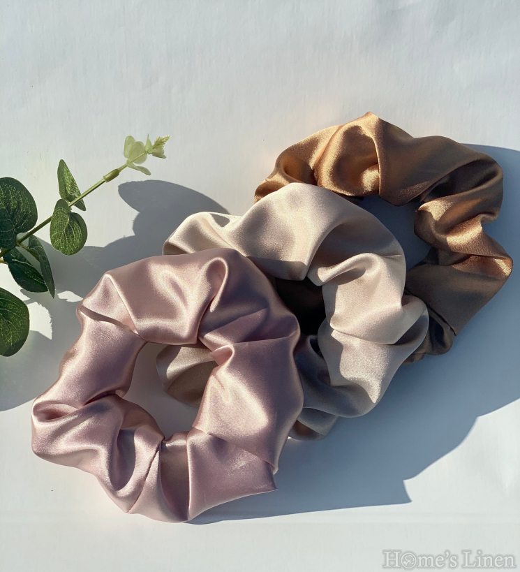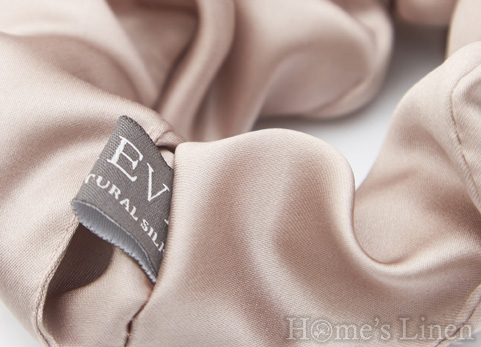Ластикът е изработен от 100% естествена коприна, чиито фибри съдържат аминокиселини със структура, подобна на тази на човешкия косъм. По тази причина, изделията от естествена коприна имат редица ползи за косата - щадят косъма и по-малко начупват косата. Едноцветния дизайн подхожда на повечето летни тоалети. Ластикът е в модерн стил скрънчи.