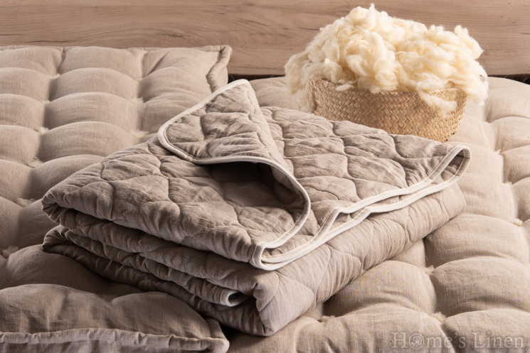 Изключително лека, но същевременно топла олекотена завивка с лен и пълнеж от 100% мерино вълна "Cuddle Nature Linen", the Woolland. Завивката е еко продукт, изработена на ръка от изцяло естествени материали. С уникални изолиращи свойства, тя дарява топлина, комфорт и спокойствие за своя притежател. Такава завивка, може да използвате по всяко време на година. Благодарение на свойството за абсорбиране на влага от тялото на вълната, със завивка Cuddle Nature може да спите дори и през летните месеци.