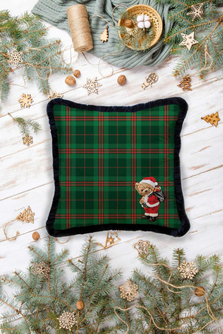 Празнична декоративна възглавница каре с мече "Ey401 Green", Mika Velvet