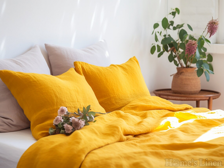 Изтъкани от 100% естествен лен, изделията от лен са допълнително обработени за постигането на това меко и приканващо усещане за сгушване в леглото. Единичният комплект включва плик и калъфка за възглавница. Двойният, гигант и макси комплекти включват плик и 2бр. калъфки за възглавница. Пликът е с отвор на късата страна, а калъфките са изработени без борд с прихлупване на късата страна. Долен чаршаф може да се поръча отделно от секция ОТДЕЛНО, ДОЛНИ ЧАРШАФИ.