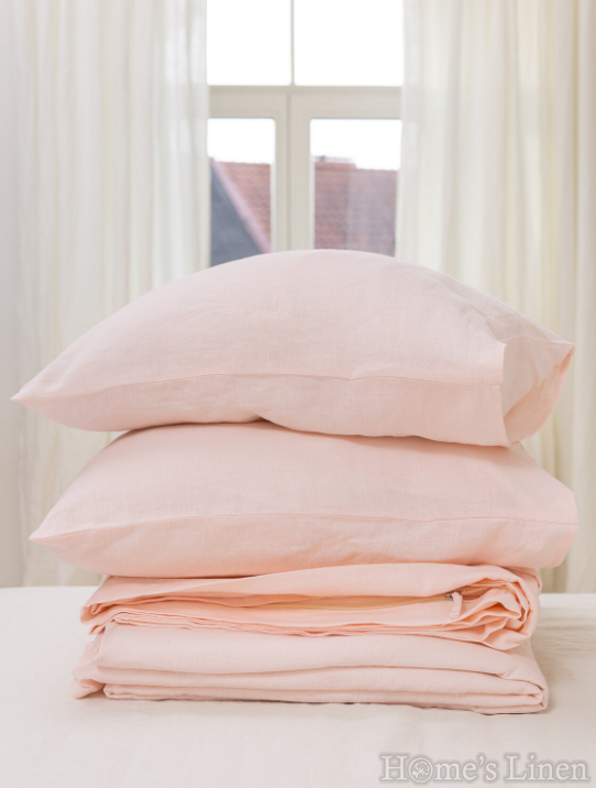 Спален комплект от 100% Френски пран лен 165гр/кв.м. "Бледо розово", Natural Linens Collection