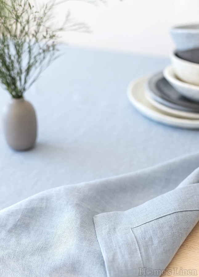 Покривка за маса от 100% Френски пран лен 165гр/кв.м. "Небесно синьо"