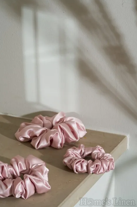 Ластик за коса 100% естествена коприна стил Scrunchie "Blush Pink" стандартен размер