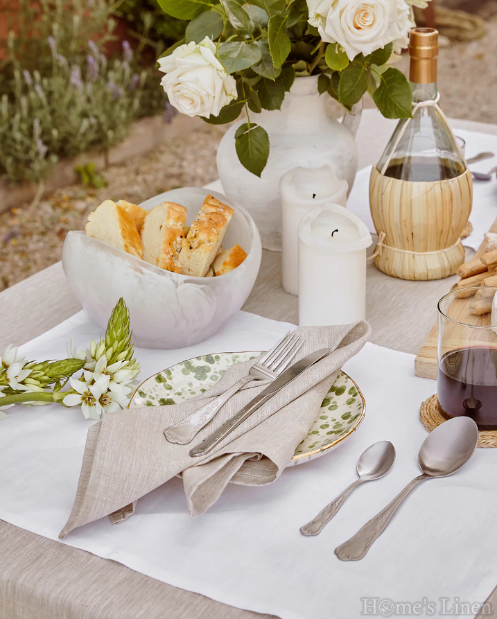 Linen Napkin with contrasting edging from French natural linen, vintage style "Natural"