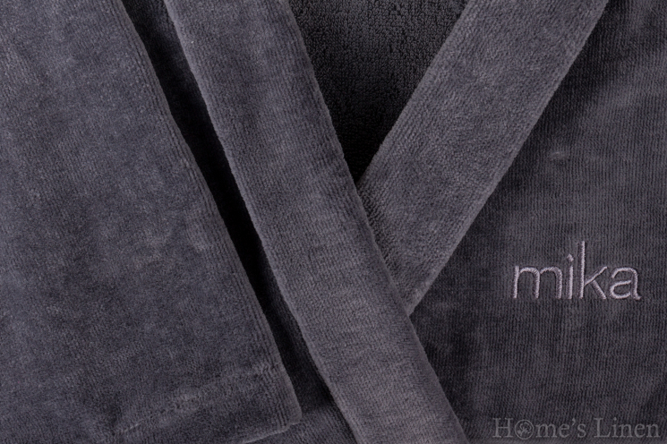Елегантен, дълъг халат за баня с качулка и джобове вътрешна страна 100% микропамук, лицева страна памук велур Mika. Унисекс - подходящ за жени и мъже. Микропамукът попива в пъти по-добре от обиновения памук и съхне по-бързо.