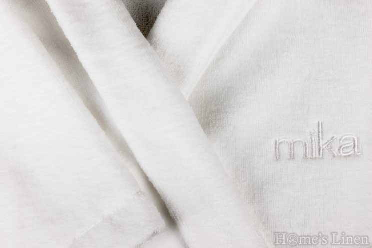 Елегантен, дълъг халат за баня с качулка и джобове вътрешна страна 100% микропамук, лицева страна памук велур Mika. Унисекс - подходящ за жени и мъже. Микропамукът попива в пъти по-добре от обиновения памук и съхне по-бързо.
