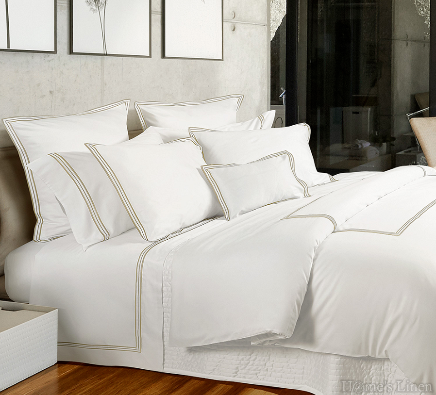 Луксозен спален комплект от памучен сатен 300TC, 100% памук с дълга нишка "Signoria Firenze Nettuno White Taupe"